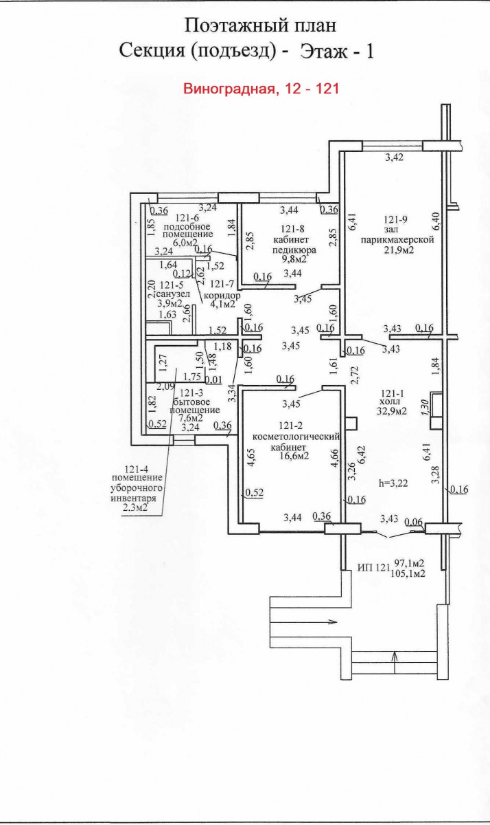 Изолированное помещение с инв. №350/D-368906, общей площадью 105,1 кв. м., назначение – Парикмахерская. Адрес: Гомельская обл., г. Гомель, ул. Виноградная, 12-121. Информация о земельном участке: расположено на земельном участке с кадастровым номером 340100000002007050 общей площадью 0,1574 га (право аренды). Местоположение (адрес): Гомельская обл., г. Гомель, ул. Виноградная, 12. Целевое назначение земельного участка: для строительства и обслуживания многоквартирного жилого дома и изолированных помещений, не относящихся к жилому фонду |