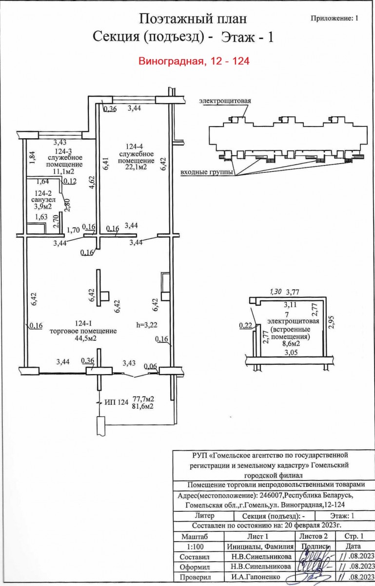 Изолированное помещение с инв. №350/D-368905, общей площадью 81,6 кв. м., назначение – торговое помещение, наименование – Помещение торговли непродовольственными товарами. Адрес: Гомельская обл., г. Гомель, ул. Виноградная, 12-124. Информация о земельном участке: расположено на земельном участке с кадастровым номером 340100000002007050 общей площадью 0,1574 га (право аренды). Местоположение (адрес): Гомельская обл., г. Гомель, ул. Виноградная, 12. Целевое назначение земельного участка: для строительства и обслуживания многоквартирного жилого дома и изолированных помещений, не относящихся к жилому фонду |