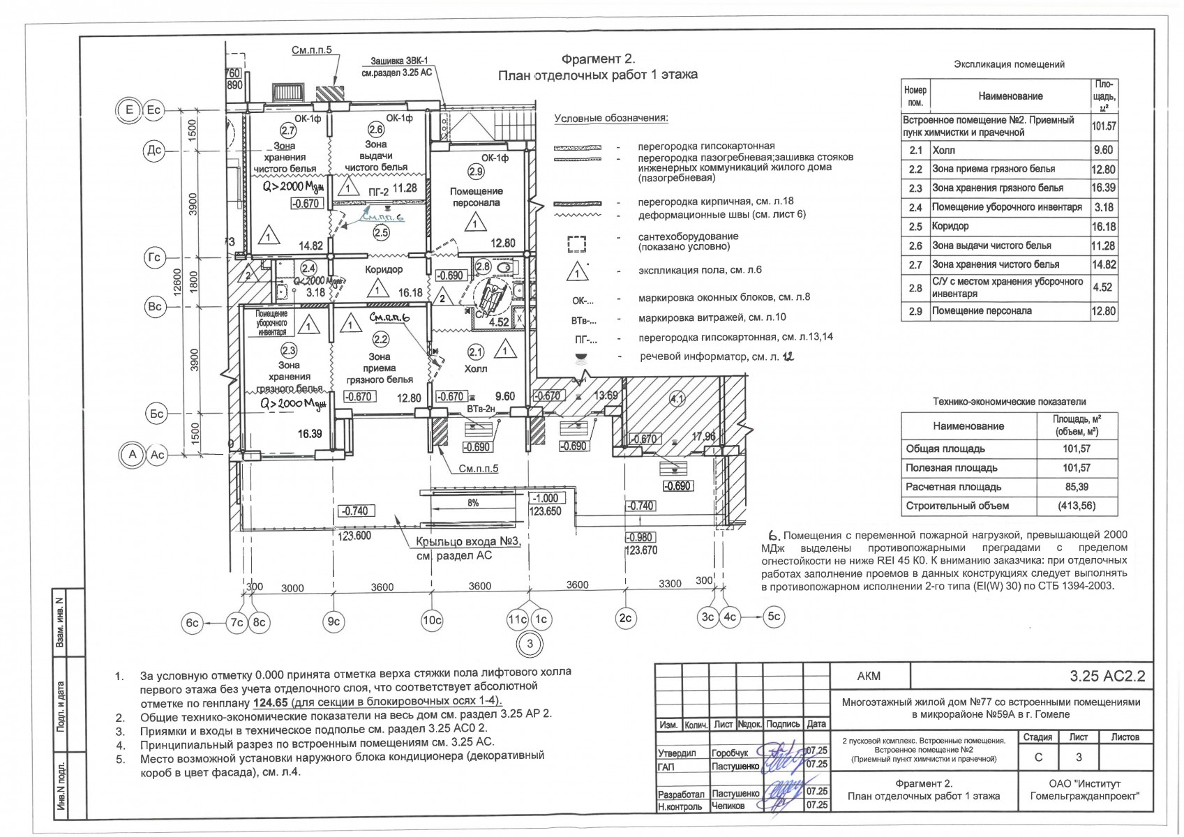 2.5.2.2. Встроенное нежилое помещение №2 (Приемный пункт химчистки и прачечной) общей площадью - 101,57 кв.м. (холл-9,60 кв.м., зона приёма грязного белья-12,80 кв.м., зона хранения грязного белья-16,39 кв.м., помещение уборочного инвентаря-3,18 кв.м., коридор -16,18 кв.м., зона выдачи чистого белья-11,28 кв.м., зона хранения чистого белья-14,82 кв.м., санузел – 4,52 кв.м., помещение персонала-12,80 кв.м.);