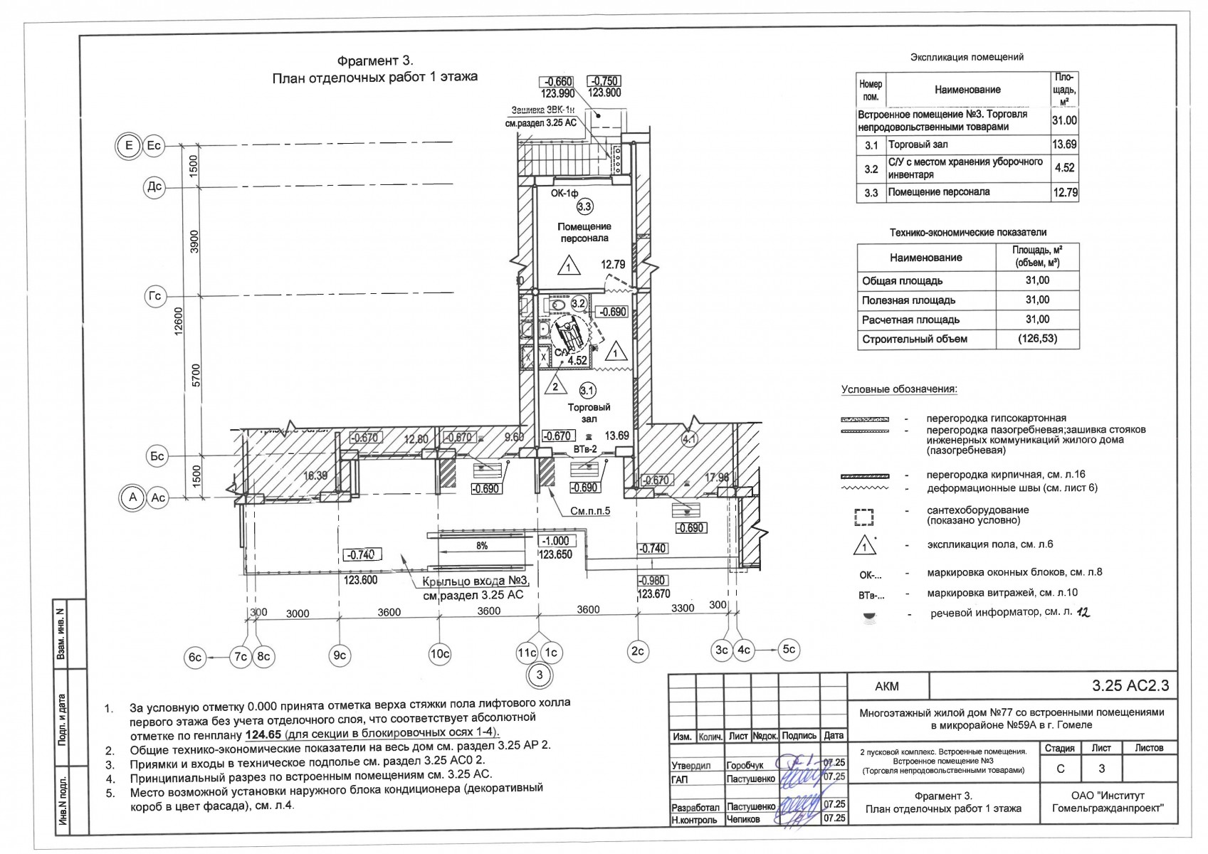 2.5.2.3. Встроенное нежилое помещение №3 (Торговля непродовольственными товарами) общей площадью - 31,00 кв.м. (торговый зал -13,69 кв.м., санузел – 4,52 кв.м., помещение персонала- 12,79 кв.м.);