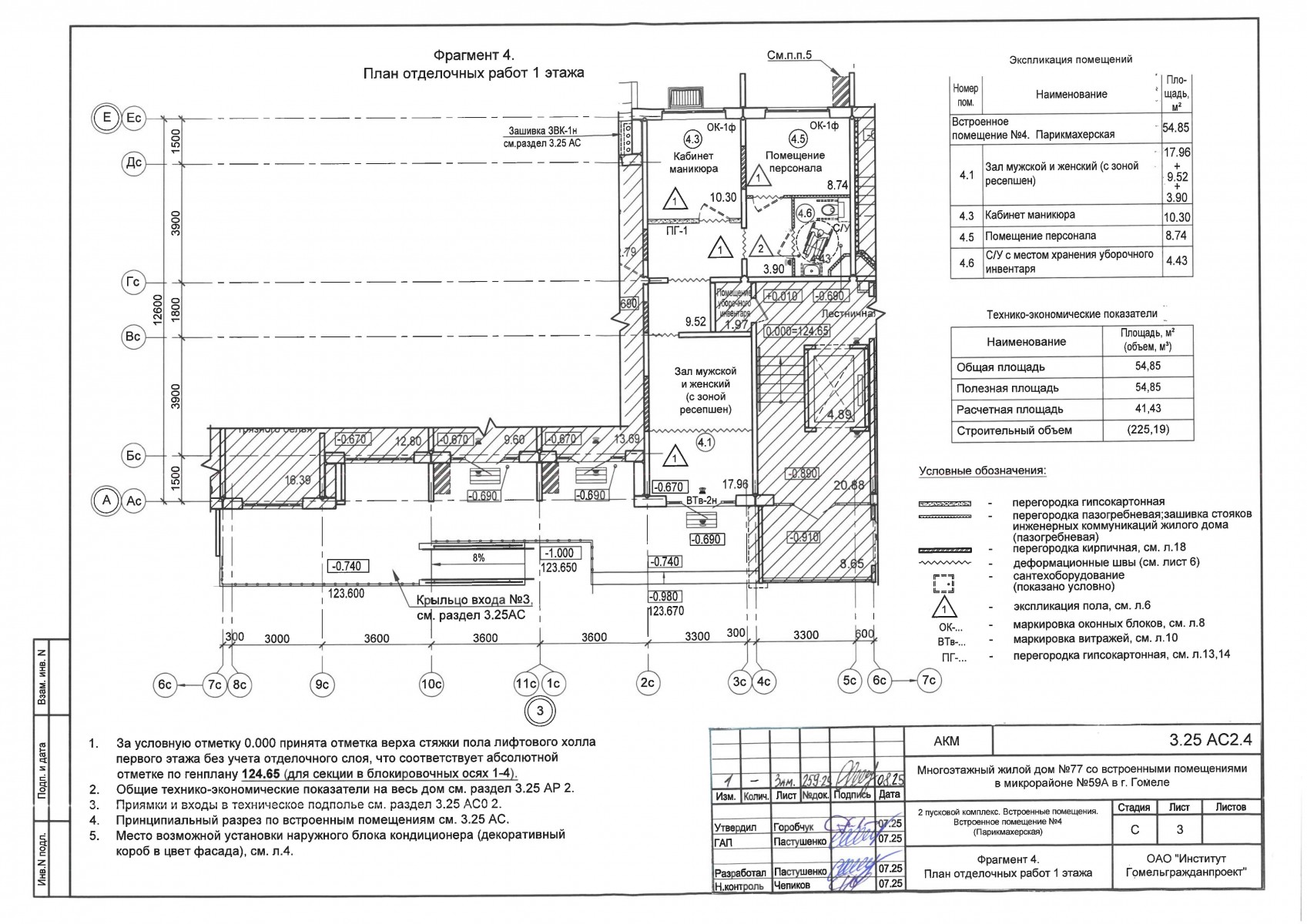 2.5.2.4. Встроенное нежилое помещение №4 (Парикмахерская) общей площадью - 54,85 кв.м. (зал мужской и женский – 31,38 кв.м., кабинет маникюра – 10,30 кв.м., помещение персонала - 8,74 кв.м., санузел –4,43 кв.м.,);