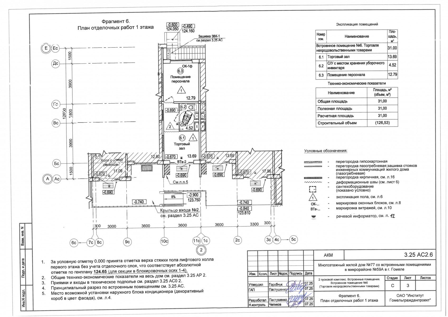 2.5.2.6. Встроенное нежилое помещение №6 (Торговля непродовольственными товарами) общей площадью - 31,00 кв.м. (торговый зал -13,69 кв.м., санузел – 4,52 кв.м., помещение персонала- 12,79 кв.м.);