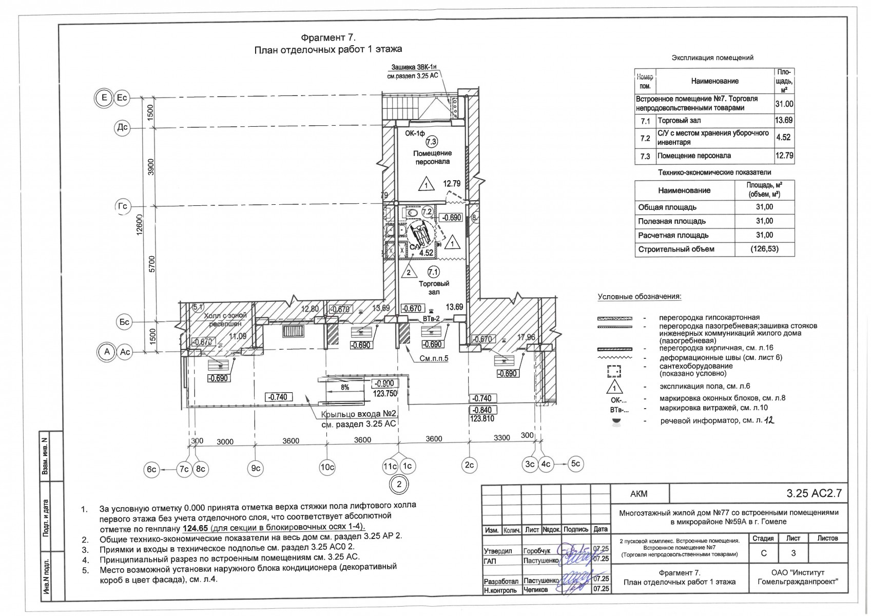 2.5.2.7. Встроенное нежилое помещение №7 (Торговля непродовольственными товарами) общей площадью - 31,00 кв.м. (торговый зал -13,69 кв.м., санузел – 4,52 кв.м., помещение персонала- 12,79 кв.м.);