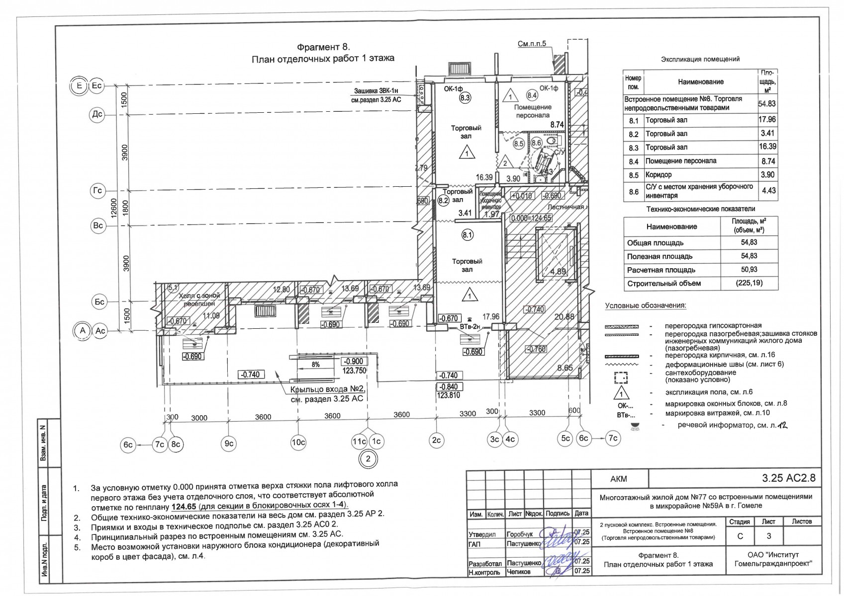 2.5.2.8. Встроенное нежилое помещение №8 (Торговля непродовольственными товарами) общей площадью - 54,83 кв.м. (торговый зал – 37,76 кв.м., санузел – 4,43 кв.м., помещение персонала- 8,74 кв.м., коридор- 3,90 кв.м. );
